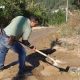 Personal encargado continúa trabajando en la excavación del terreno con el objetivo de dar mayor firmeza y seguridad a la base para la construcción del muro...