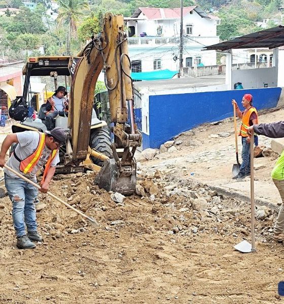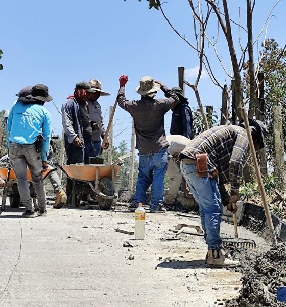 El personal de la empresa constructora trabaja en la fundición de pavimento sobre la calle que conduce hacia el antiguo Centro de Salud. Se recomienda a...