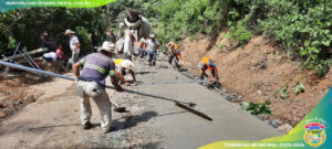 Personal asignado continúa trabajando en la construcción de bordillos, banquetas y cunetas en el proyecto de pavimentación que brindará una mejor conexión de nuestros vecinos hacia el periférico del municipio. Solicitamos a la población conducir con precaución y moderación, ya que los trabajos continúan en desarrollo.