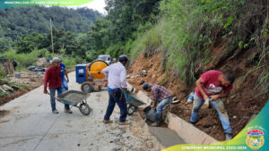 Personal asignado continúa trabajando en la construcción de bordillos, banquetas y cunetas en el proyecto de pavimentación que brindará una mejor conexión de nuestros vecinos hacia el periférico del municipio. Solicitamos a la población conducir con precaución y moderación, ya que los trabajos continúan en desarrollo.