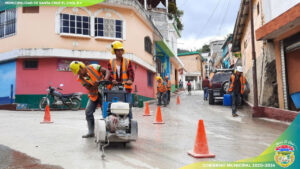 En el proyecto de pavimentación del caserío San Francisco, aldea Los Amates, personal autorizado realiza la construcción de bordillos y cunetas para dar soporte y vitalidad al tramo carretero. Nuestro Gobierno Municipal trabaja por el desarrollo de nuestro municipio.