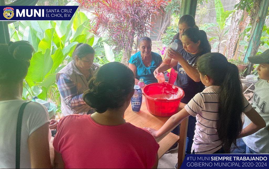En coordinación con la DMM y la Esposa del señor Alcalde Municipal, se da seguimiento al programa municipal Comunidades Productivas trabajando durante los meses de julio y agosto en las comunidades de San Francisco, Ojo de Agua, Santa Lucía, Los Amates y Los limones. Durante estos meses, se ha capacitado a grupos de mujeres en la elaboración de productos de higiene personal y limpieza para el hogar, enfocado al fomento del ahorro. Tenemos el objetivo de crear nuevas oportunidades y mejorar la economía familiar, a través del emprendimiento local.