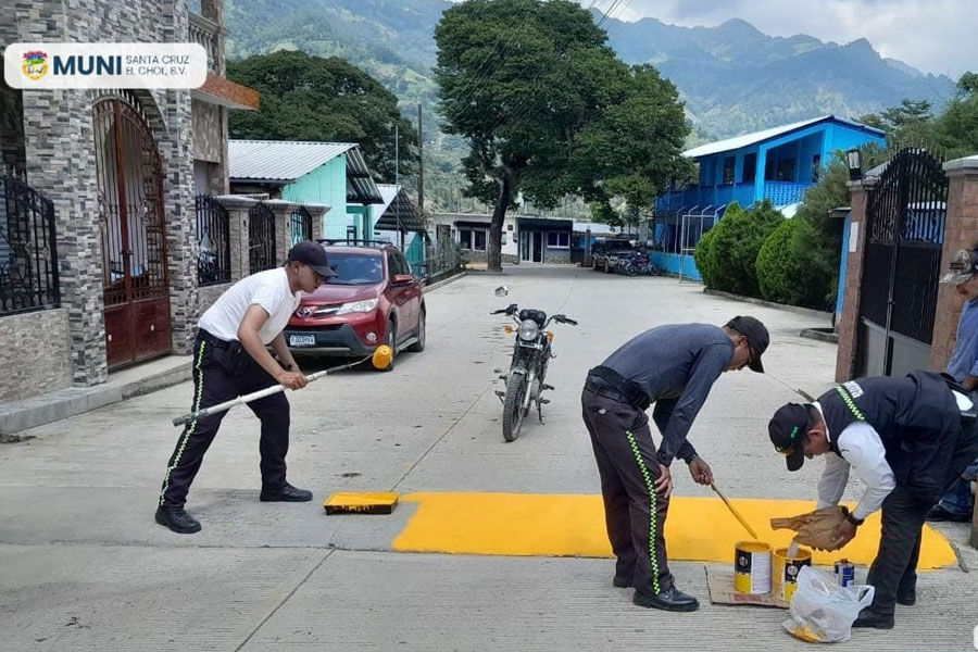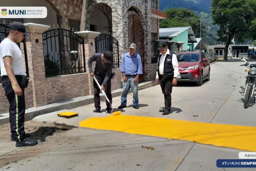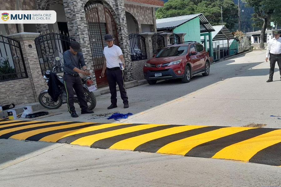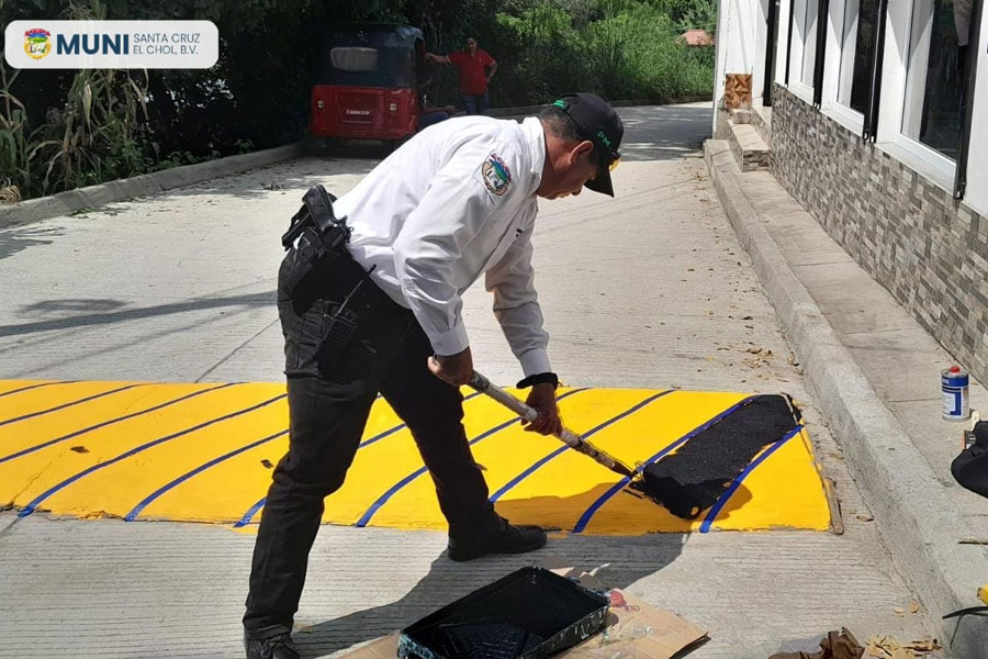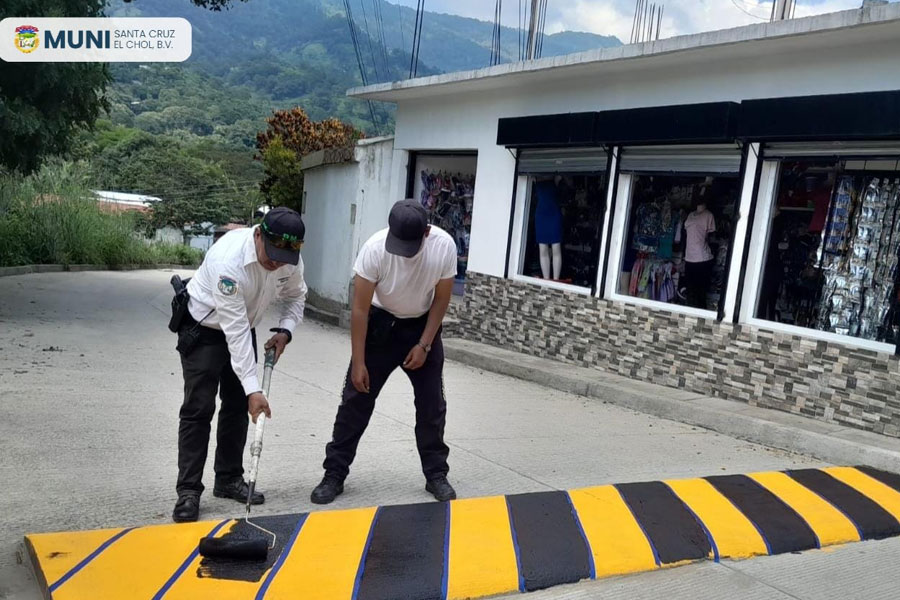 Para contribuir con la seguridad de la comunidad educativa y con el bienestar de nuestros vecinos, elementos de la policía municipal pintaron los túmulos localizados en el área urbana de aldea Los Amates. Esta acción se realiza para disminuir la velocidad en la zona escolar y salvaguardar la vida de los transeúntes.