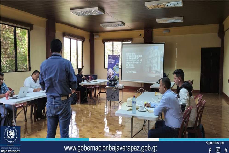 El miércoles 16 de octubre, se realizó en el Centro de Gobierno Departamental el “Taller de fortalecimiento de la gestión municipal” en el cual se tuvo la participación del Señor Gobernador Departamental, los Señores alcaldes de El Chol y Salamá, así como de los Directores Municipales de Planificación de Granados, El Chol, Cubulco, Rabinal, San Miguel, San Jerónimo y Salamá, el cual es facilitado por personal del Instituto Nacional de Administración Pública –INAP-.