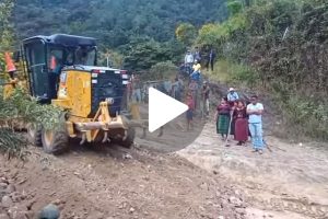 Personal y maquinaria, apoyando a vecinos unidos, para mejorar las condiciones de la Ruta Nacional No. 05