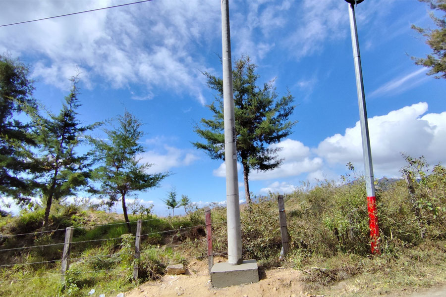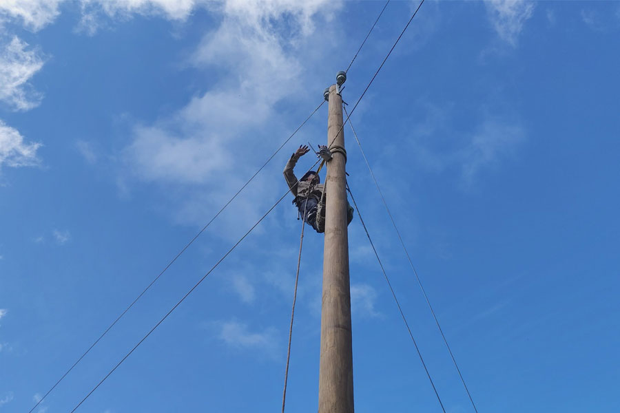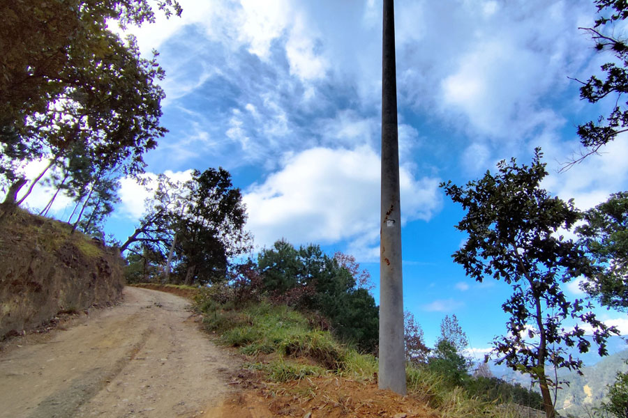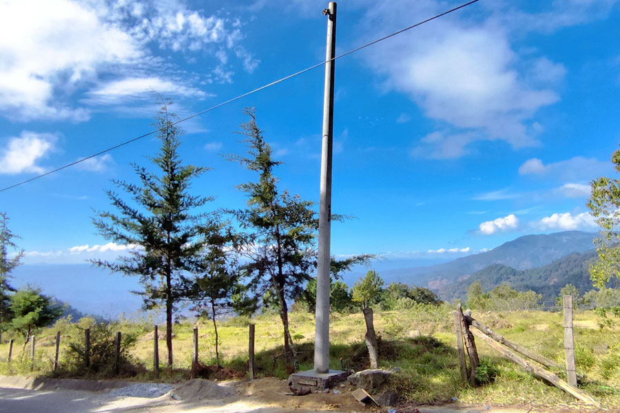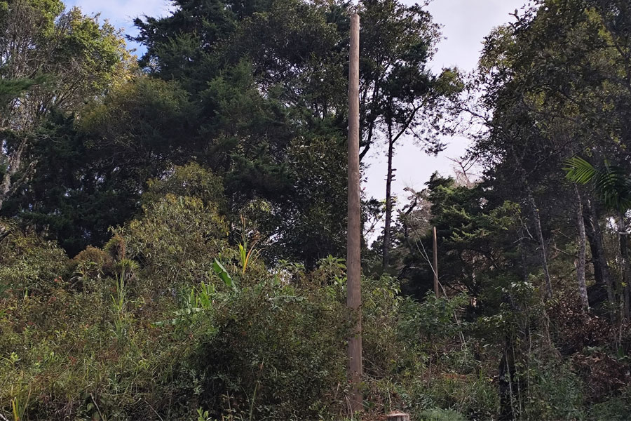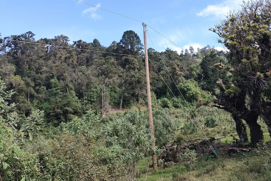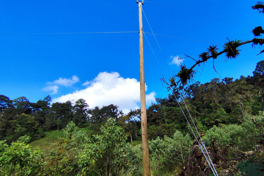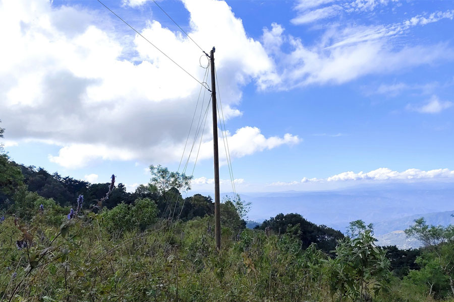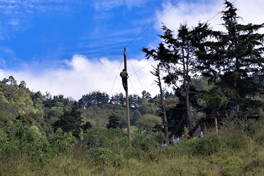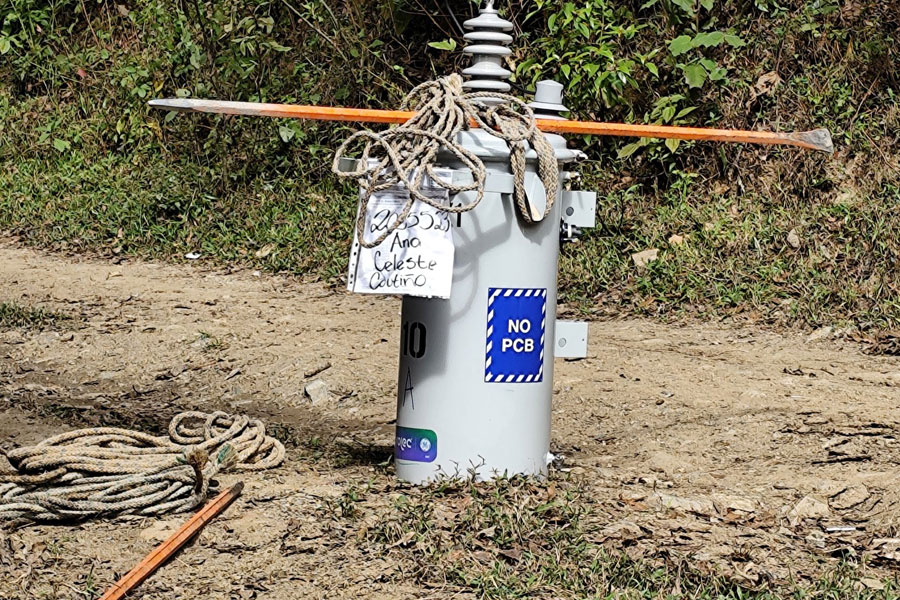 La empresa encargada del proyecto de electrificación, trabaja en la instalación de transformadores para las líneas de conducción en los distintos sectores de aldea El Apazote.