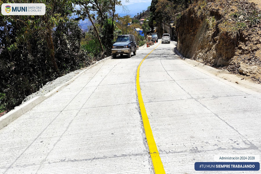 Personal de la constructora encargada continúa trabajando en la fundición de la carretera que conduce hacia las oficinas del RENAP, conectando con el periférico.