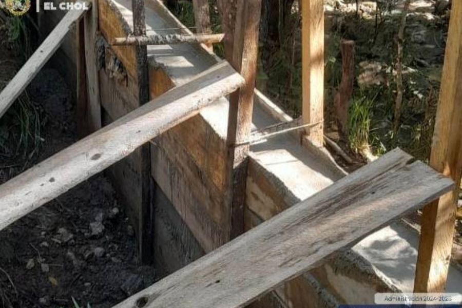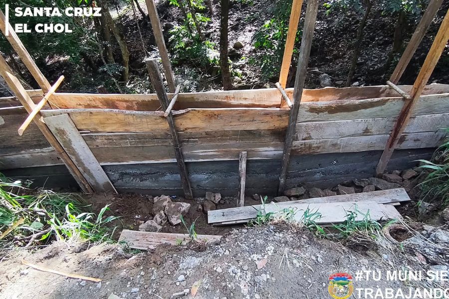 Municipalidad avanza en la fundición de muro de contención en ruta hacia el caserío Los Caulotes
