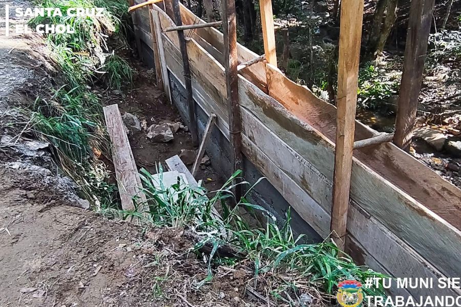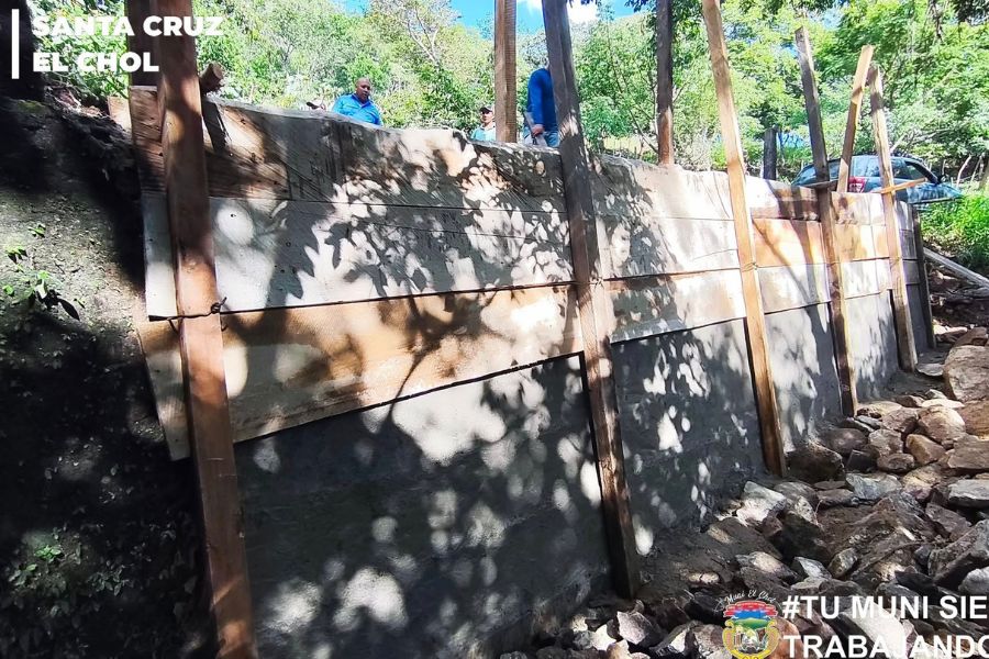 Personal operativo municipal trabaja en la fundición del muro de contención ubicado a un costado de la carretera que conduce hacia el caserío Los Caulotes, contribuyendo así, al fortalecimiento de la infraestructura vial y al bienestar de nuestros vecinos.