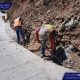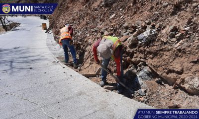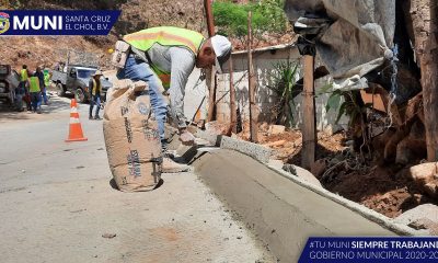 Personal especializado en la construcción de cunetas y bordillos continúa trabajando en la finalización del área pavimentada sobre la carretera que conduce del caserío El Potrerito...